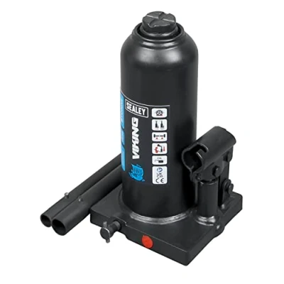 ManoManoGeneral description Sealey Viking Bottle Jack 5 Tonne is designed for strength and reliability, featuring an overload valve for safety. The base and reservoir are machine welded to enhance durability and prevent leakage. It comes with a 2-piece handle for ease of use and is backed by a 3-year guarantee. Technical specifications Model No.: PBJ5S Min. Height: 207 mm Max. Height: 402 mm