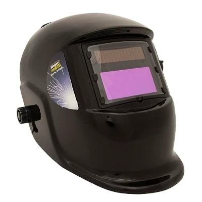 Welding helmet with adjustable shade control between 9-13. Suitable for MIG, TIG and arc welding. Complies with BS EN 379, BS EN 175 and DIN standards. Fully automatic switching from light to dark on striking arc. Contoured design helmet with adjustable headband for added comfort. Shade is selected by a rotary knob on side of helmet. Features sensitivity and delay controls for switching light to dark. Grinding function enables user to grind without removing mask. Solar panel power supply - no batteries required., Weight: 1.6093745126 Pounds, Manufacturer: Sealey
