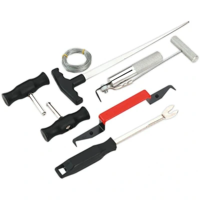 ManoManoGeneral description Sealey Windscreen Removal Tool Kit 7pc is a complete tool kit designed for the efficient removal of bonded and rubber sealed screens. It features reinforced composite handles paired with heat-treated, chromed steel shafts, ensuring durability and strength during use. Technical specifications Model No.: WK3 EAN: 5024209288149 Handles include hanging eyes for storage Other information