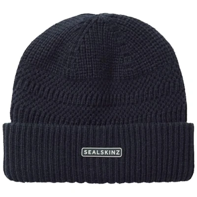 SEALSKINZ Gressenhall Waterproof Cold Weather Textured Stripe Roll Cuff Beanie Navy