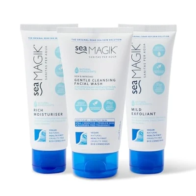 CLEANSING FACIAL WASH: A natural cleansing, foaming facial wash that gently removes impurities and unwanted blemishes, leaving skin refreshed, soft, and glowing. Infused with soothing aloe vera and acne-tackling tea tree oil for a healthy, radiant complexion. RICH MOISTURISER: A revitalising, hydrating moisturiser that improves the appearance of skin tone and texture while soothing the mind. Lightweight and non-greasy, it’s perfect for everyday use and is ideal as a base for make-up. Infused with nourishing organic seaweed and coconut oil to help correct moisture balance for soft, healthy skin. MILD EXFOLIANT: A mild exfoliation treatment that gently nurtures skin and removes dead skin cells to reveal a bright, clear complexion for all-day confidence. Infused with soothing Salicylic Acid, calming Crystal Quartz, and moisturising shea butter for happy skin that feels as clean as it does soft. SINCE 1981: We have spent 40 years perfecting the infusion of mineral salts into skincare and haircare products and treatments to deliver outstanding results and relief from skin concerns, including repairing and hydrating skin cells not just at the surface level but beyond. POWERFUL INGREDIENTS: The three facial treatments feature mineral-rich Dead Sea Salt that reduces skin irritation and itchiness, exfoliates dead skin cells, and hydrates skin for a softer feel and more youthful appearance. Add a touch of luxury to your daily routine with a spa treatment at home. FOR ALL SKIN TYPES: The facial wash, rich moisturiser, and mild exfoliant are ideal for combination, sensitive, dry, and problem-prone skin. The formulas are vegan, cruelty free, and free from gluten, parabens, PEGs, sulphates, silicones, and other nasties.