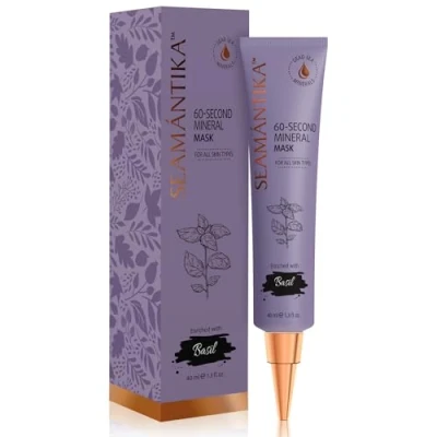 SEAMANTIKA 60 Second Mineral Mask with Basil Extract Reduces Wrinkles & Improves Texture Suitable for All Skin Types Free from Parabens, Sulfates, Silicones 40 ml