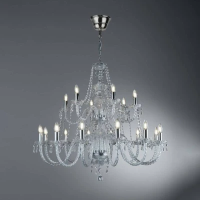 The 18-bulb Hale chandelier is a shiny highlight for the room The elegant Hale chandelier, with its playful details, is an endlessly-sparkling eye catcher. Its decoration made of numerous cut glass crystals ensures that it can illuminate each room with its shiny brilliance. The arms curve from the centre of the light and are also made of cut crystal glass. This creates numerous light reflections when on, which support its imposing impression. discreet, chrome metal elements round off the overall image.