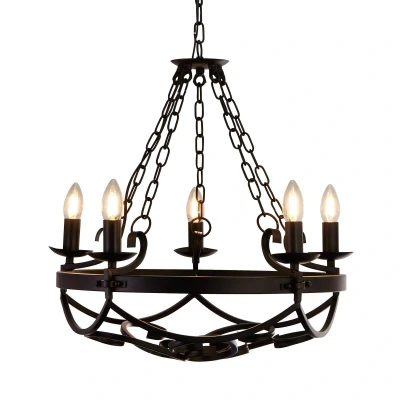 Searchlight Cartwheel III chandelier, 5 bulb, Ø 54 cm, black, metal