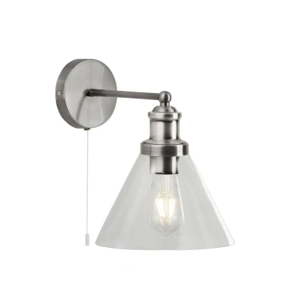 Searchlight Pyramid 1 Light Wall Satin Silver, Glass Shade, E27