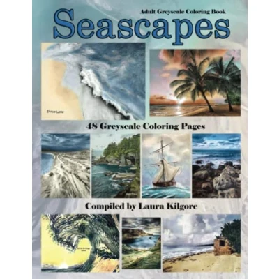 Seascapes: Adult Greyscale Coloring book with the theme being all about sea. If you like to color seascapes and landscapes, then this is your 48 beautiful pages.