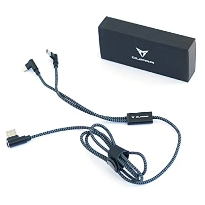 Cupra Swiss Peak 3-in-1 Charging Cable With double-sided connection for iOS and Android devices with micro USB Material: nylon, aluminium Cable length: 1.2 m. Colour: black, grey Includes gift box with Cupra lettering