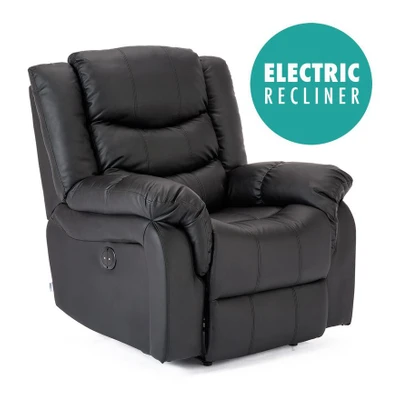 Seattle Electric Black Leather Auto Recliner Armchair Sofa Home Lounge Chair