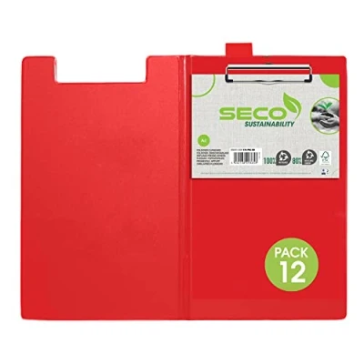 Seco A4 ECO PVC Covered Fold Over Clipboard with Heavy Duty Clip Red (Pack of 12)