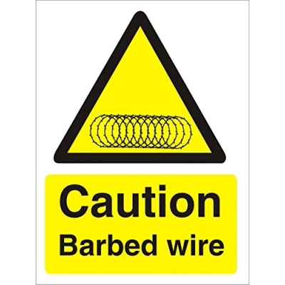 Seco Caution Barbed Wire with Coil Pictogram Sign, 150mm x 200mm Self Adhesive Vinyl