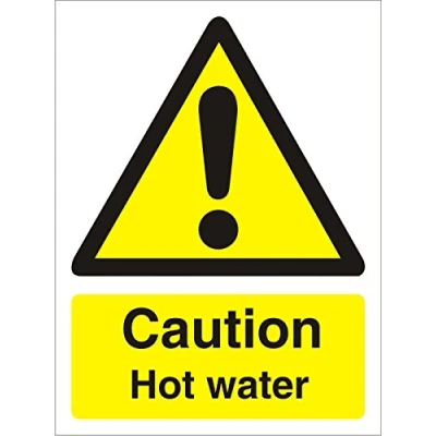 Seco Caution Hot Water Sign, 50mm x 75mm (Pack of 5) Self Adhesive Vinyl