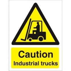 Seco Caution Industrial Trucks Sign, 150mm x 200mm Self Adhesive Vinyl