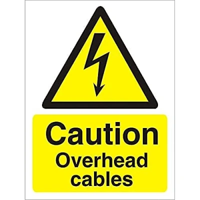 Seco Caution Overhead Cables Sign, 150mm x 200mm 1mm Semi Rigid Plastic