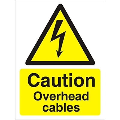 Seco Caution Overhead Cables Sign, 300mm x 400mm Self Adhesive Vinyl