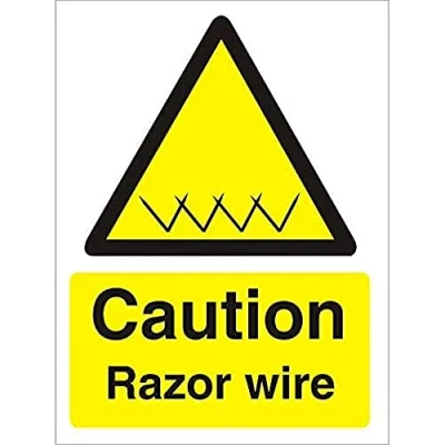 Seco Caution Razor Wire with Spike Pictogram Sign, 200mm x 300mm 1mm Semi Rigid Plastic