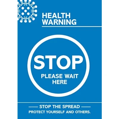 SECO Coronavirus Essential Poster "Health Warning Stop Please Wait Here", A4, Blue and White