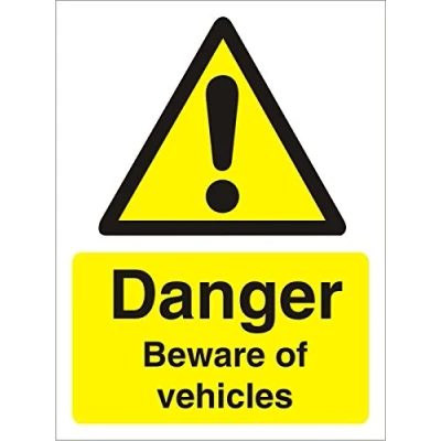 Flexible, peel and stick material, versatile - will stick to any clean surface. Mainly interior use but can used externally self adhesive vinyl suitable for indoor use Suitable for indoor use Hardwearing Warning yellow, black and white self adhesive vinyl sign Danger beware of vehicles Can be used in a working environment, office, restaurant, cafe's and many other areas Size 150 x 200mm Peel and Seal backing Hardwearing