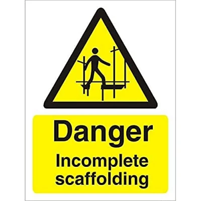 Seco Danger Incomplete Scaffolding Sign, 300mm x 400mm 1mm Semi Rigid Plastic