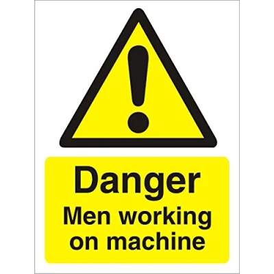 Seco Danger Men Working On Machine Sign, 200mm x 300mm 1mm Semi Rigid Plastic