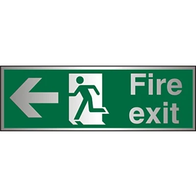 Seco Fire Exit Arrow Pointing Left, Man Running Sign, 300mm x 100mm Brushed Aluminium Acrylic