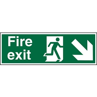 Seco Fire Exit Exit, Man Running Right, Arrow Pointing Down & Right Sign, 300mm x 100mm 2mm Prestige Acrylic