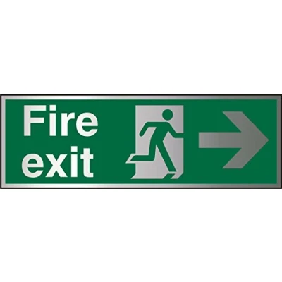 Seco Fire Exit Exit, Man Running Right, Arrow Pointing Right Sign, 300mm x 100mm 1.5mm Brushed Aluminium Composite