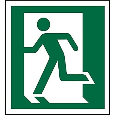 Seco Fire Exit Man Running Through Door Left Sign, 100mm x 1mm Semi Rigid Plastic