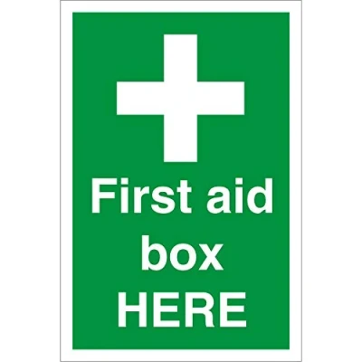 Seco First Aid Box Here Sign, 400mm x 600mm 4mm Fluted Board