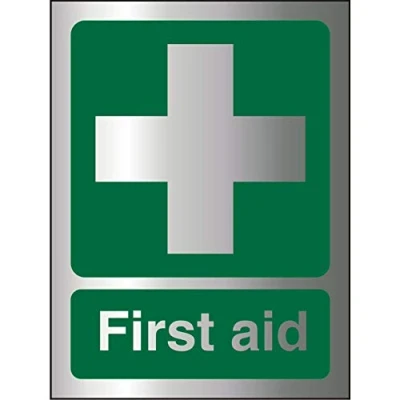 Seco First Aid Sign, 150mm x 200mm 1.5mm Brushed Aluminium Composite