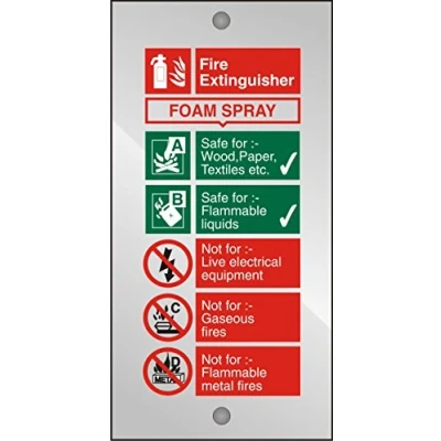 Seco Foam Spray Fire Extinguisher Sign, 100mm x 200mm 5mm Clear Acrylic with Stand Off Fixings