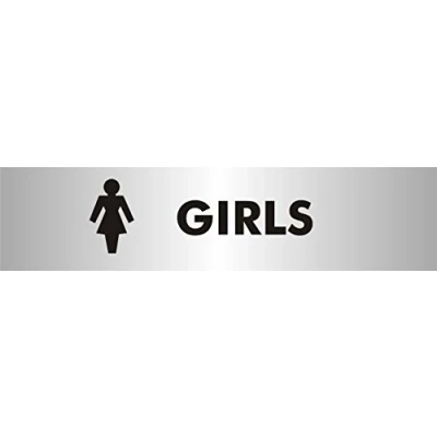 Seco Girls with Pictogram Sign, 190mm x 45mm 2mm Brushed Aluminium Effect Acrylic