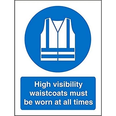 Seco High Visibility Waistcoats Must Be Worn at All Times Sign, 200mm x 300mm Self Adhesive Vinyl