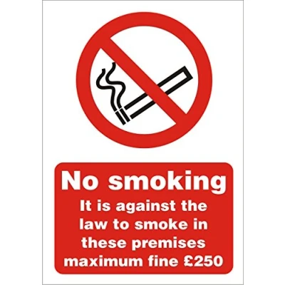 Seco No Smoking It is Against The Law to Smoke in These Premises Maximum Fine £250 Sign, A4 1mm Semi Rigid Plastic