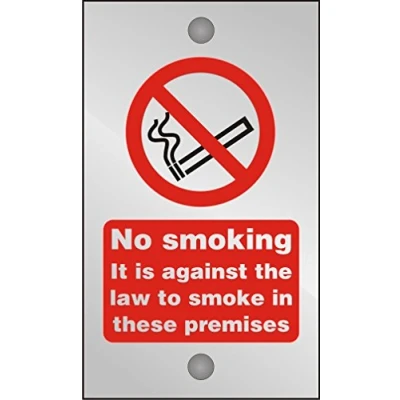 Seco No Smoking It is Against The Law to Smoke in These Premises Sign, 120mm x 200mm 5mm Clear Acrylic with Stand Off Fixings
