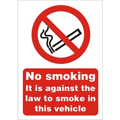 Seco No Smoking It is Against The Law to Smoke in This Vehicle Sign, A4 1mm Semi Rigid Plastic