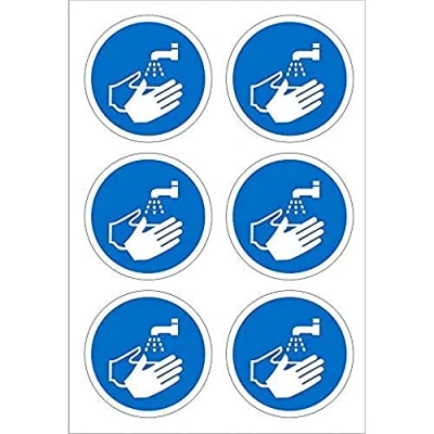 Seco Now Wash Your Hands Pictogram Sign, 60mm Diameter (Sheet of 6) Self Adhesive Vinyl
