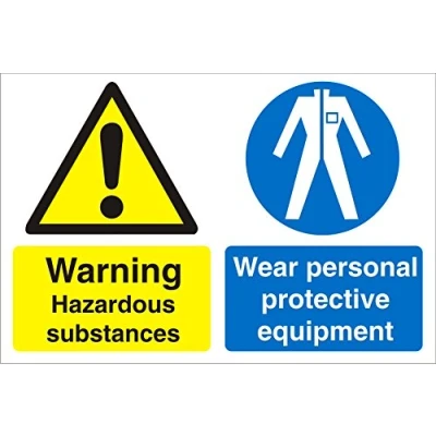 Seco Warning Hazardous Substances, Wear Personal Protective Equipment Sign, 150mm x 200mm Self Adhesive Vinyl
