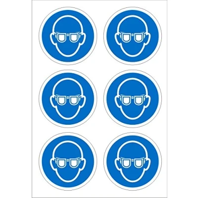 Seco Wear Goggles Pictogram Sign, 60mm Diameter (Sheet of 6) Self Adhesive Vinyl