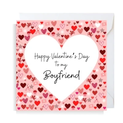 Boyfriend heart cupid design. Premium quality, printed on 300GSM matte card. Card size approx : 145mm x 145mm. Cards are left blank in the middle and come with an envelope. Cards are fully recyclable. Search for Second Ave Gift Company to see our full range of gift ideas.