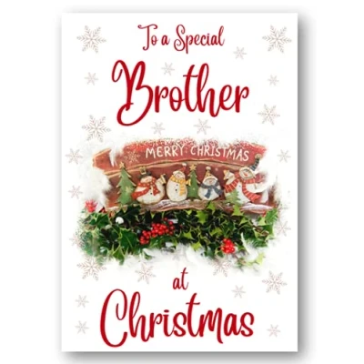 Second Ave Brother Christmas Red Holly Snowman Xmas Holiday Festive Greetings Card