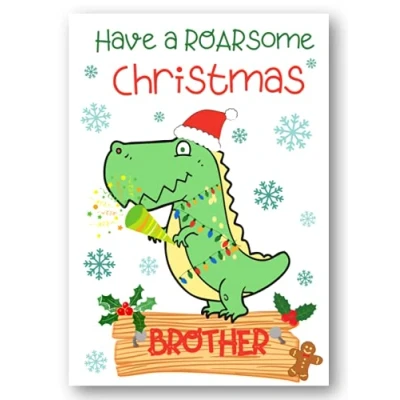 Second Ave Brother Dinosaur Children's Kids Christmas Xmas Holiday Festive Greetings Card