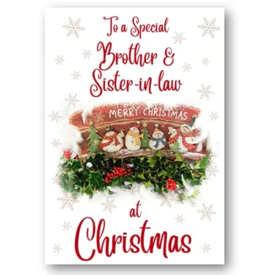Second Ave Brother & Sister in Law Christmas Red Holly Snowman Xmas Holiday Festive Greetings Card