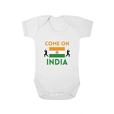Second Ave Come on India Cricket Baby Grow Vest White Shortsleeve Babygrow Bodysuit