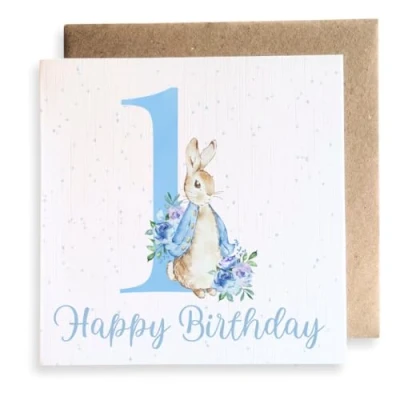 Second Ave Cute 1st Birthday Age 1 Blue Bunny Rabbit Square Card Greeting for Boy