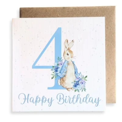 Blue bunny rabbit 4th Birthday square card for boy. Premium quality, printed on 350GSM linen card. Card size approx : 148.5mm x 148.5mm. Cards are left blank in the middle and come with a brown envelope. Cards are fully recyclable. Search for Second Ave Gift Company to see our full range of gift ideas.