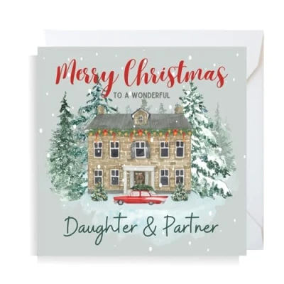 Second Ave Daughter & Partner Christmas House Square Xmas Holiday Festive Greetings Card