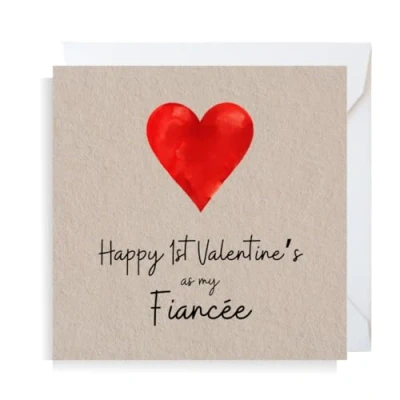 1st Valentine's Day as my Fiancee design. Premium quality, printed on 300GSM matte card. Card size approx : 145mm x 145mm. Cards are left blank in the middle and come with an envelope. Cards are fully recyclable. Search for Second Ave Gift Company to see our full range of gift ideas.