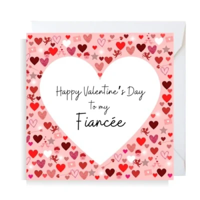Fiancee heart cupid design. Premium quality, printed on 300GSM matte card. Card size approx : 145mm x 145mm. Cards are left blank in the middle and come with an envelope. Cards are fully recyclable. Search for Second Ave Gift Company to see our full range of gift ideas.