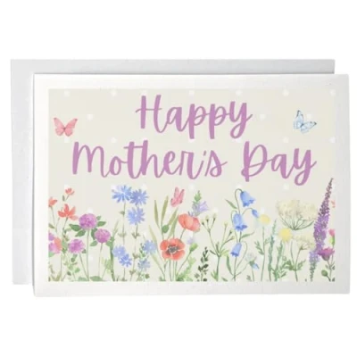 Flower butterfly landscape Mother's Day design. Premium quality, printed on 350GSM linen card. Card size: 210mm x 148mm. Cards are left blank in the middle and come with an envelope. Cards are fully recyclable. Search for Second Ave Gift Company to see our full range of gift ideas.