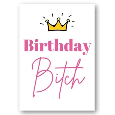 Funny Birthday bitch Birthday card. Premium quality, printed on 350GSM linen card. Card size: 210mm x 148mm. Cards are left blank in the middle and come with an envelope. Cards are made from FSC certified card and are fully recyclable. Made by Second Ave Gift Company in our Essex based workshop. Search for Second Ave Gift Company to see our full range of gift ideas.
